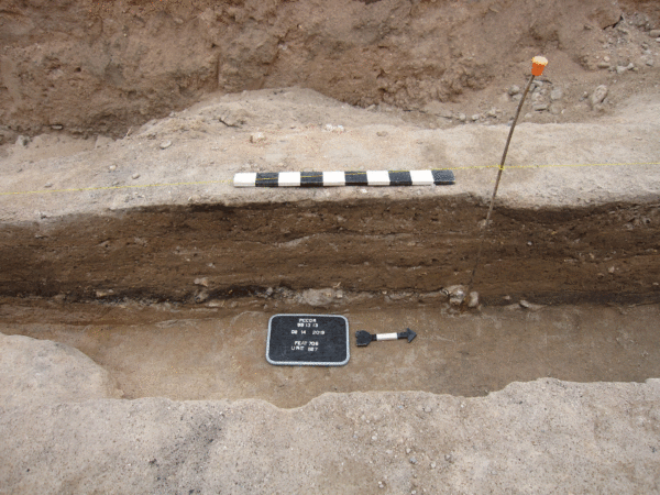 Feature 712 is the black layer on the left side, at the base of these excavation units. (click to enlarge)