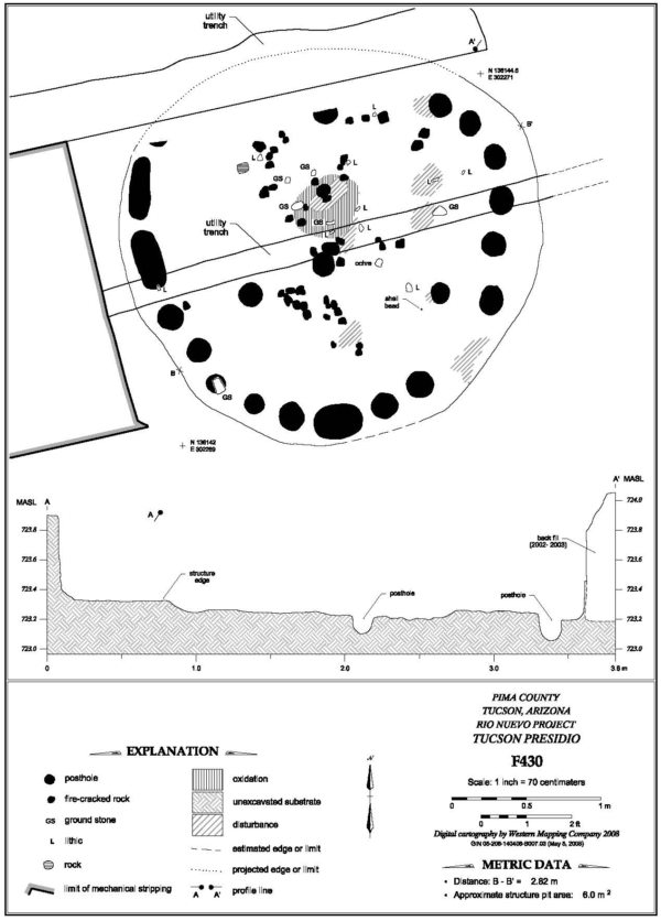 A Silverbell Interval house encountered during the Rio Nuevo excavations south of West Congress Street.