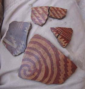 The Hohokam era in the Tucson area began around AD 500 and lasted until AD 1450. The Hohokam are well known for the pottery they created, which often incorporated elaborate painted designs. These designs changed every few decades, similar to how clothing styles change today. Through the excavation of stratified deposits and the use of radiocarbon dating, pottery experts can date the designs to relatively short time spans.