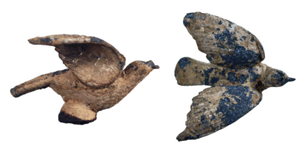 A dove caplifter, once attached to the lid of a child’s coffin, found in the Pima Lodge 10, International Order of Red Men plot within the Court Street Cemetery (photo by Rob Ciaccio).
