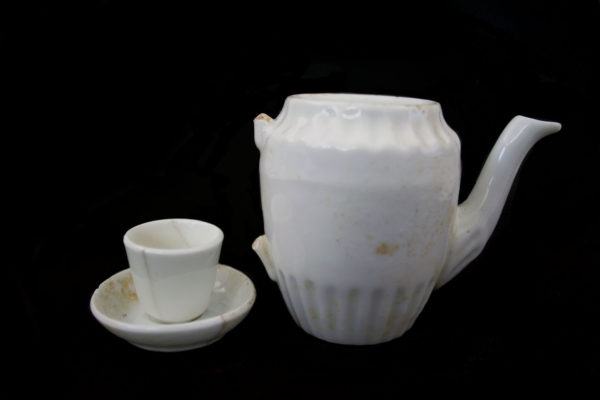 Cup, saucer, and tea pot from a child’s tea party set discarded by the Coleman family on Historic Block 91 (photo by Rob Ciaccio).
