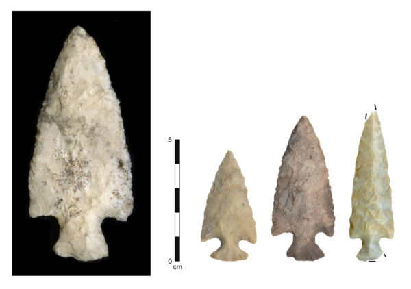 Item #8, with Arizona Transition Zone Pozos (middle two) and Geronimo (rightmost) points also found at Los Pozos for comparison.