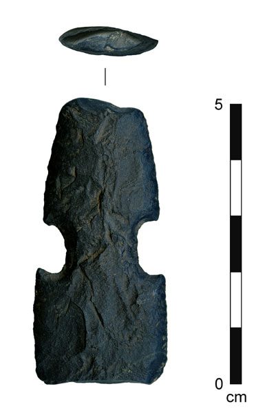(25) Smaller piece of basalt similar to #1, minimally shaped through grinding but with no usewear traces.