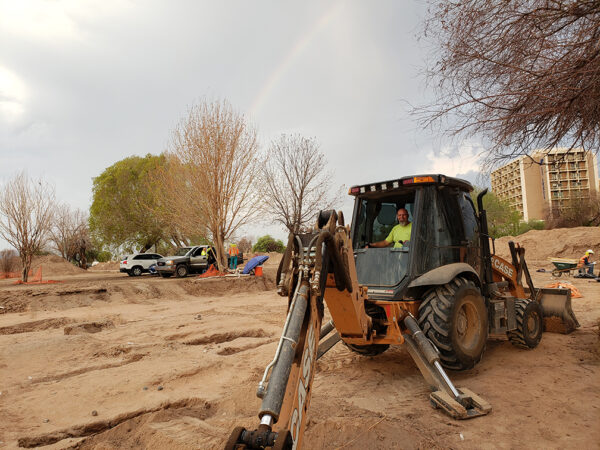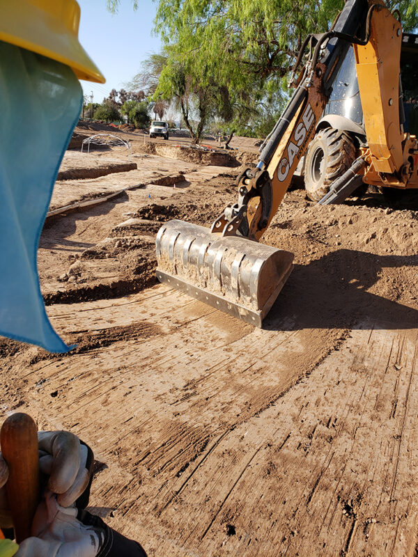 Unfortunately, the use of heavy equipment can sometimes be destructive. It’s just a fact of doing archaeology. While we try our best to be as careful as possible, inevitably things will get damaged, whether it’s digging with a dental pick, a trowel, a shovel, or a backhoe. However, it’s the age-old dilemma in archaeology—the trade-off between time and information. We could dig everything with dental picks, but the amount of information gained by that attention to detail would be minimal at best. In contrast, using heavy equipment sometimes results in damage, but the vast amount of information gained by being able to do much more work results in far greater potential for understanding past human behavior, which is our ultimate goal.