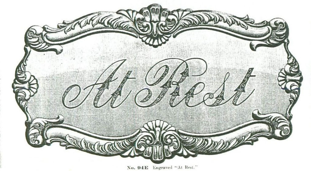 Identical "At Rest" plaque from the Chattanooga Coffin Company 1905 catalogue (image courtesy Jeremy Pye).