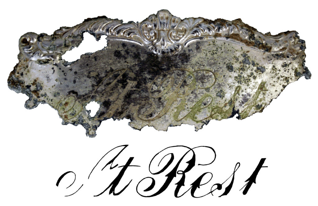 "At Rest" plaque discovered on a coffin in the Red Men plot (photograph by Robert Ciaccio).