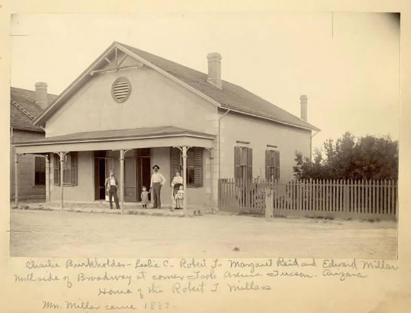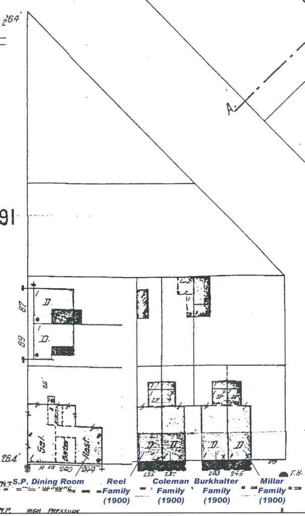 A photograph, taken in 1883, of the duplex occupied by the Burkhalter and Millar families in the early 1900s.