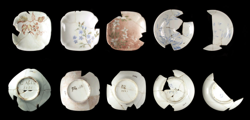 Labor-saving devices and the ability to hire servants allowed Territorial-era middle class Tucsonans to explore hobbies and to purchase a variety of new, more expensive toys for their children. China painting was a popular pursuit, with classes offered locally at the Tucson Conservatory. The painted dishes could be displayed as artwork, given as gifts, or used by the family. A set of butter pats and a saucer found in the Burkhalter privy were hand-painted by someone named G. Noble between 1880 and 1884.