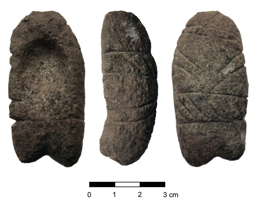 An unusual groundstone item, perhaps a fire starter, recovered from a Hohokam pit structure.