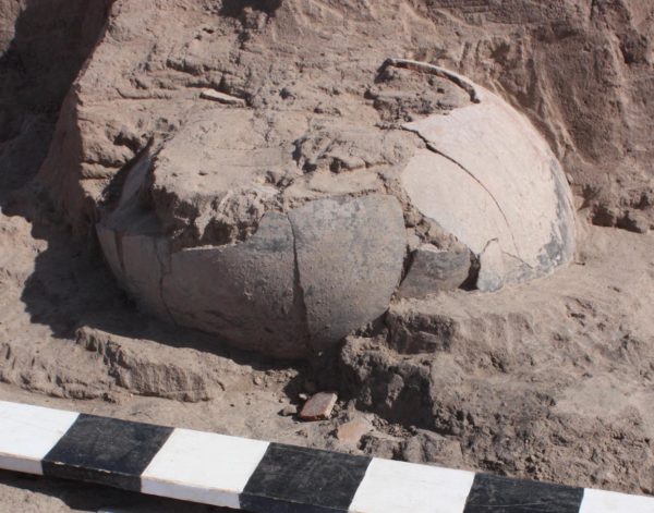 A broken seed jar found on the floor of Feature 7, a pit structure at the Paseo site.