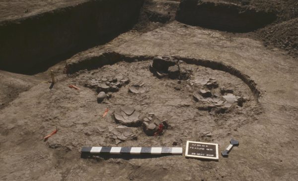 A view of Feature 4419, a storage structure with five seed jars on its floor at the Mission Garden locus of the Clearwater site.