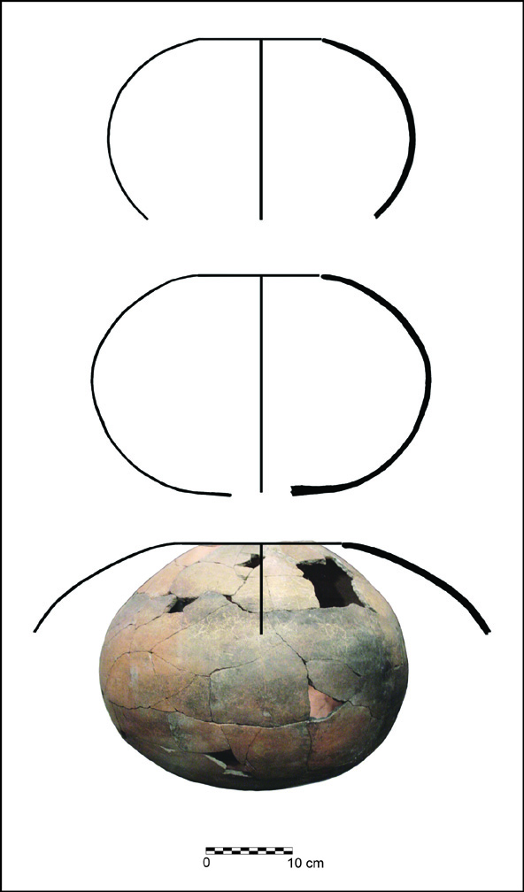 Seed jar profiles from the Clearwater Site and a reconstructed seed jar from the Stone Pipe Site (drafted by Robert Ciaccio).
