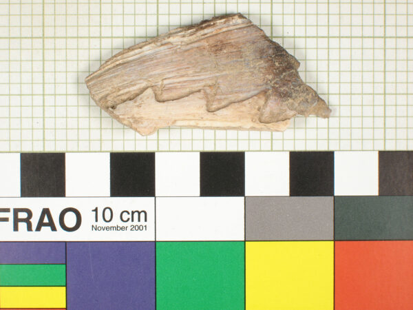 Etched Laevicardium shell fragment from Honey Bee Village. (photo by Chris Lange)