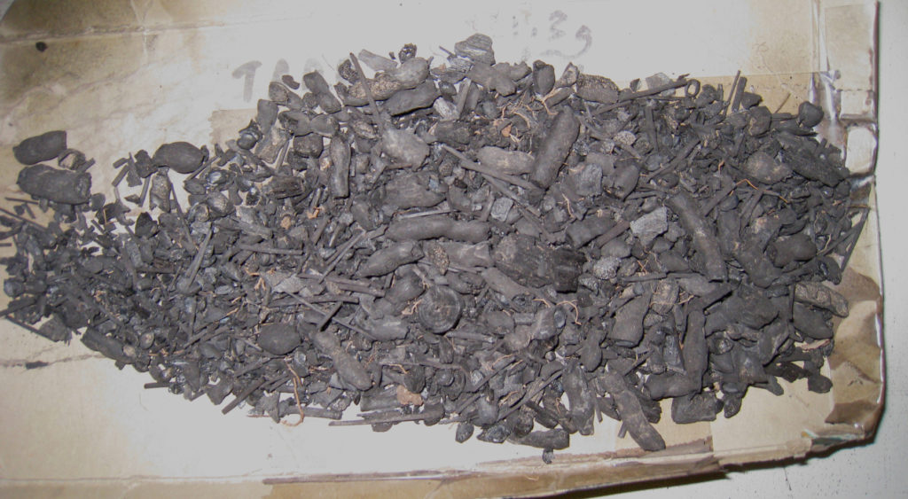 Corn is not always the big story. This sample from northwestern Phoenix contains identifiable wood charcoal. Mesquite pods stand out in this photograph, but under the microscope, other plant tissues will be observed.