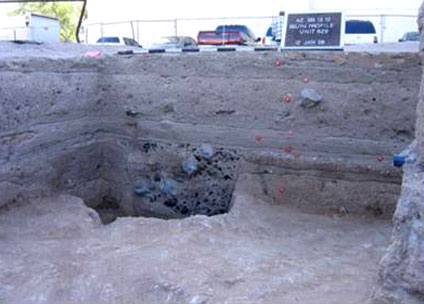 An in-ground roasting pit, used to cook meat, found at the Presidio San Agustín del Tucson site (photo by Homer Thiel).