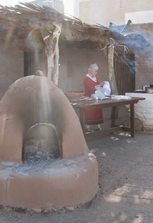 Visitors to the monthly Living History events at the Presidio San Agustín del Tucson Museum, at 196 N. Court Avenue, can sample tortillas, bread baked in an horno, and quince jam made from the tree growing in the park. The next Living History is a Luminaria Event on December 9, 2017, running from 3 to 8 PM.