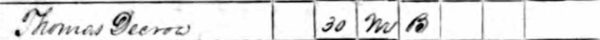 The 1850 Federal census Slave Schedule for Matagordas, Texas lists Thomas Decrow as having one 30-year-old, male, Black slave.