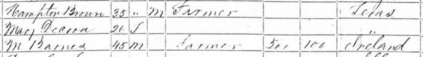 By August 1860, Hampton Brown and Mary Decrow were living on the San Pedro River, where he and M. Barnes worked as farmers.