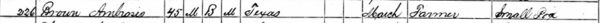 The 1870 census collected mortality data. Brown appears as Ambrosio Brown in the entry recording his death from smallpox.