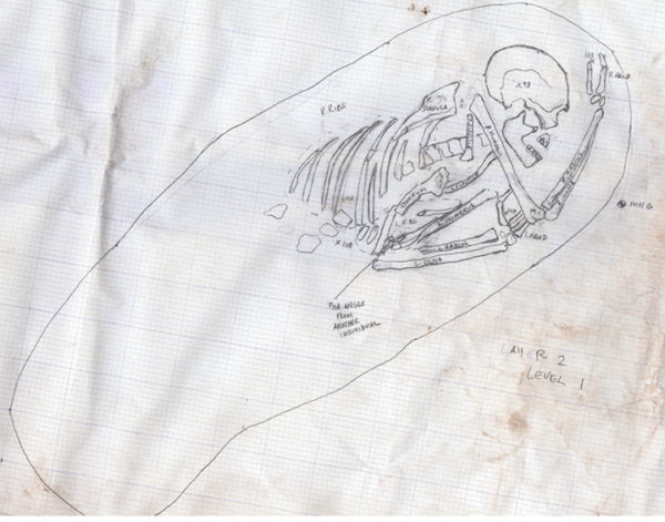 Drawing of the burial of the Presidio soldier (drafted by Erina Gruner and Katie Bubnekovich, Desert Archaeology).