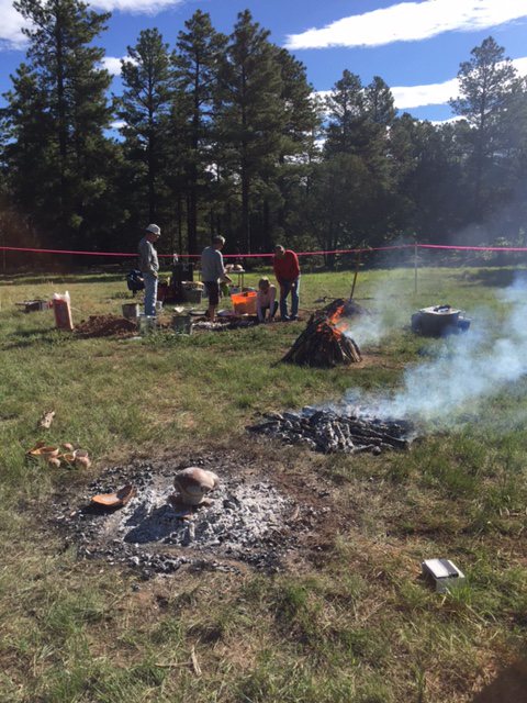 Firing pots at the scenic Tijeras, NM Ranger Station with fellow ceramic enthusiasts at the Kiln Conference.