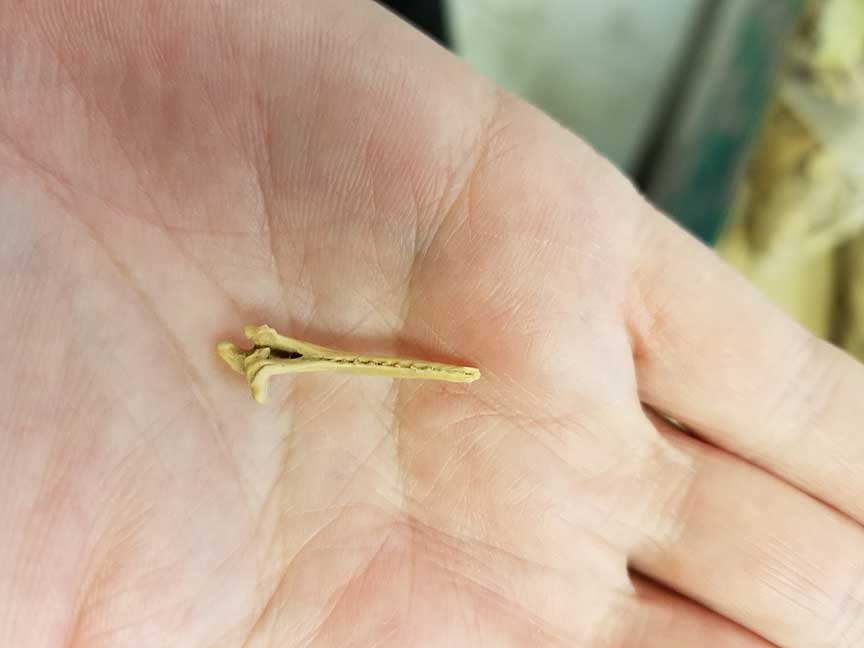 Animal bones may be found either while digging or while screening. To ensure that small items aren’t missed during data recovery projects, we screen most of the dirt we excavate, typically through ¼-inch mesh. In some cases we use 1/8-inch mesh to recover a sample of smaller bones that usually fall through the ¼-inch mesh.