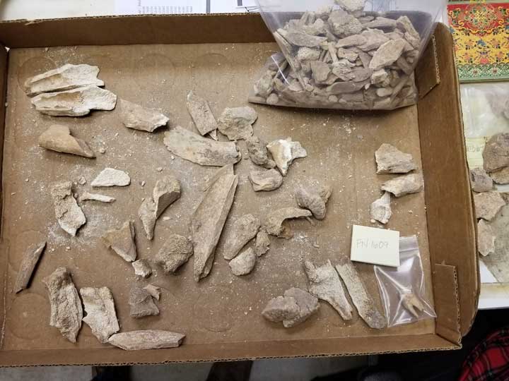 A tray of animal bones recovered during excavations at the Historic Pima County Courthouse in downtown Tucson for the January 8th Memorial. The bones came from a thick layer of Presidio-era trash.