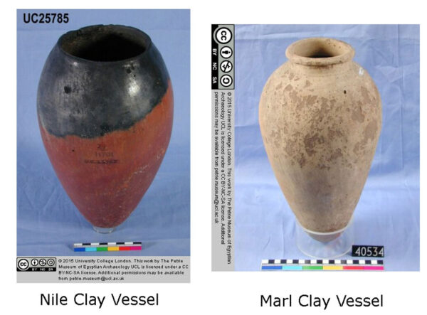 Petrographic analysis of pottery samples, using a special geologic microscope to examine thin sections of ceramics, can provide data to address these questions (see previous blogs about petrography and how we use it). In the Southwest, we have used the geologic diversity of pottery raw materials (mostly clay and sand) to refine provenance (place of origin) assignments and clarify exchange of vessels. Information on how pottery production was organized and differences in raw material selection are now well known. Egypt does not have this diversity and in fact, the use of Nile clay for much pottery means provenance work is challenging as this resource is broadly available with little variability. The other preferred clay type is a calcareous clay acquired from the erosion of limestone deposits. Such deposits are found on both sides of the Nile Valley, the Delta, and in the Western Desert oases. Likewise, shale clays used for making pottery are found in the southern half of the Nile Valley and in the Western Desert oases. However, pottery production in the latter areas has recently been clarified through my work on the petrographic analysis of kiln samples from Kharga, Dakhla, and Bahariya (soon to be published, in the French journal Cahiers de la Céramique Égyptienne 12). Also, clarification of the kaolinitic clays in the Aswan areas has been done (see Resources, below). This new data has enabled much more to be said about pottery production and distribution in Egypt.