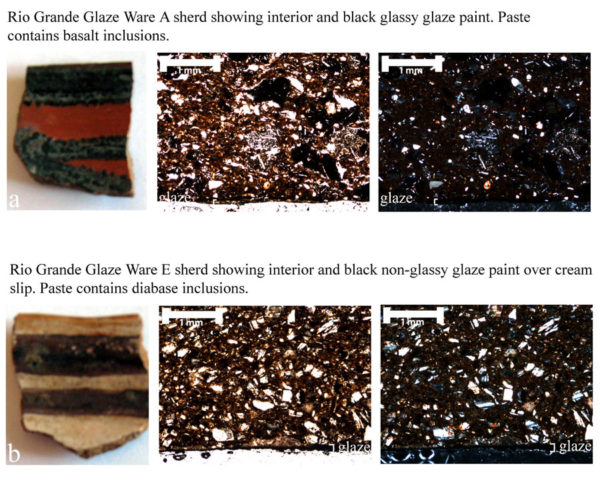 Given the very different social, political and economic contexts, what does this say about how people learned glazing methods? In Egypt, the industrial production of Medieval Glaze Ware meant that glazing knowledge, first developed in the Near East, could be directly acquired by Egyptian potters. They would then have needed to adapt the recipe to their local raw materials, but they could acquire the glazing ingredients easily through extensive trade networks. Thus, the Egyptian Medieval Glaze Ware was produced to a high technological degree and was nearly identical to such pottery produced elsewhere in the Near East. In the decentralized pueblos of New Mexico, potters in the southern Piro Pueblos may have indirectly acquired the knowledge for producing glaze paint from northern pueblos through seeing such vessels circulated among the pueblos. This may have resulted in the poor production of lead paints by specialists along with issues in acquiring the proper raw materials due to the Spanish missions limiting people’s movements. Overall, this study shows how petrographic analysis of pottery from here and there can give us a great insight into how pottery was made under different socio-economic systems.