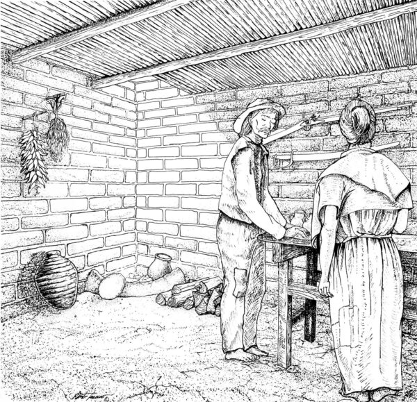 The people living at the Tucson Presidio lived 100 miles from the nearest stores in Arizpe. It was difficult and somewhat dangerous to bring goods from the stores there, so the men and women living in the fort made do with things they could make themselves or acquire through bartering with the local O'odham. Special things–slabs of chocolate, cloth, buttons, beads, and majolica dishes–were imported overland to the fort. These items, necessities and luxuries, helped make life a little easier on the northern frontier of New Spain.