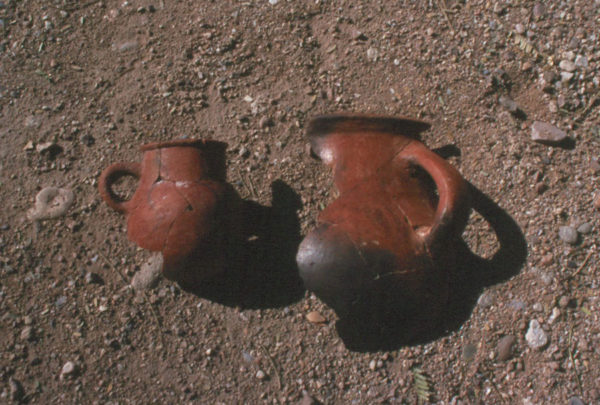 A few homes had black-on-white or polychrome vessels manufactured by Hopi, Zuni, or New Mexican Puebloan potters.