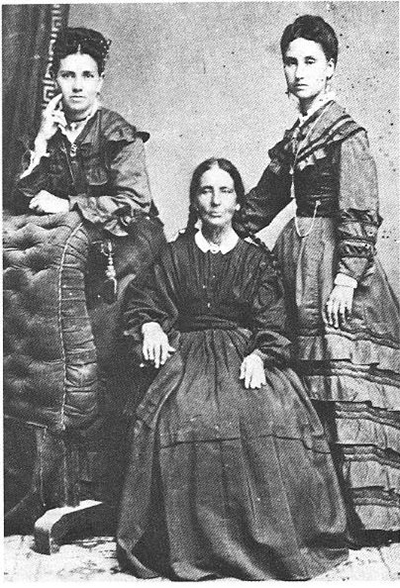 Guadalupe Santa Cruz flanked by her nieces Atanacia Santa Cruz de Hughes and Petra Santa Cruz de Stevens.