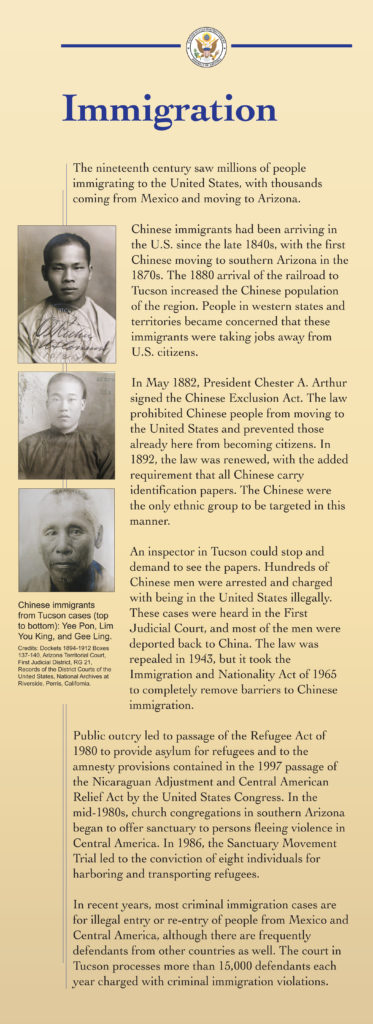 The signs for the courthouse exhibit were designed by Publications Manager Emilee Mead. The text for this one, framing immigration issues through the experience of 19th-century Chinese immigrants, was developed by historic archaeologist Homer Thiel.