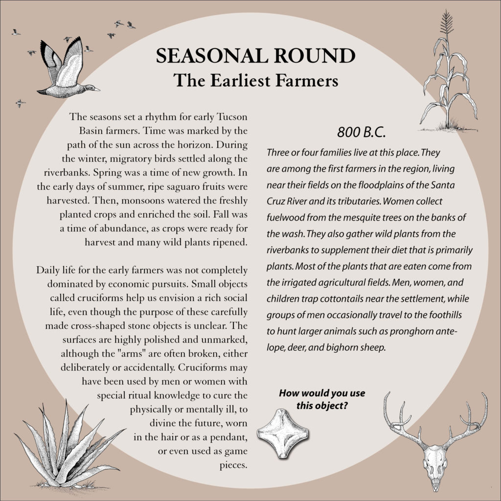 Desert Archaeology has helped create several exhibits at the Arizona Historical Society’s Arizona History Museum, located at 949 East 2nd Street in Tucson. The Rio Viejo, Rio Nuevo exhibit tells the story of the Santa Cruz River and the findings made during excavations at the prehistoric Clearwater site, the Mission of San Agustín, the Presidio San Agustín del Tucson, and the Tucson Pressed Brick Company. A highlight is a recreated well with artifacts discarded by Chinese gardeners in the 1890s.