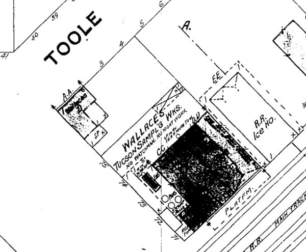 The 1896 Sanborn Fire Insurance map mistakenly labeled the Works as Wallace's Tucson Sampling Works, perhaps because Charles Wores had a German accent.