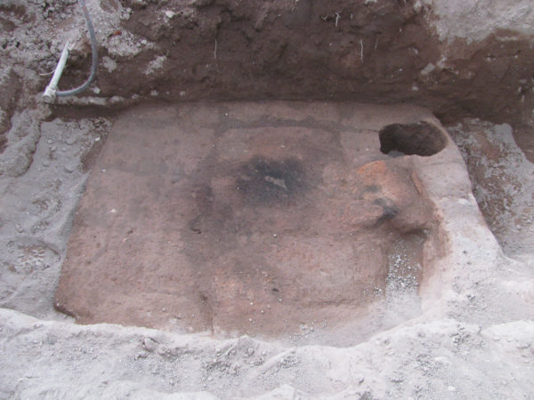 The base of the Romero house horno. The bricks are fired bright red from the extreme heat of the oven (photograph by Homer Thiel).